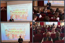 В рамках Парламентского урока был проведён классный час«Татарстан-наш общий дом».Ребята подготовили выступления,а учитель 1г класса Зотова Н.А.с использованием презентации более подробно рассказал о нашем крае. -