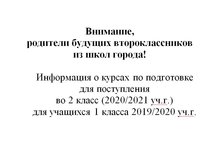 Внимание, родители будущих второклассников из школ города! 10.01.2020