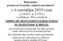 Запись на подготовительные курсы по подготовке к школе закончена.