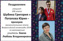 Шубина Григория и Потапова Юрия – призеров