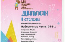Набережные Челны представляли три команды. Все они были подготовлены педагогом Любовью Баевой из нашей гимназии №26 и участвовали в конкурсе шестиклассников, одна из которых в составе учащихся: Аетдинова Ильяса, Ахмадиева Асгата, Лукоянова Алексея, Маскина Николая, Рипенко Макара, Халитовой Альбины стала победителем в высшей лиге!