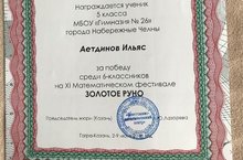 Поздравляем ПОБЕДИТЕЛЯ (среди 6 классов) XI Математического фестиваля Золотое Руно АЕТДИНОВА ИЛЬЯСА!