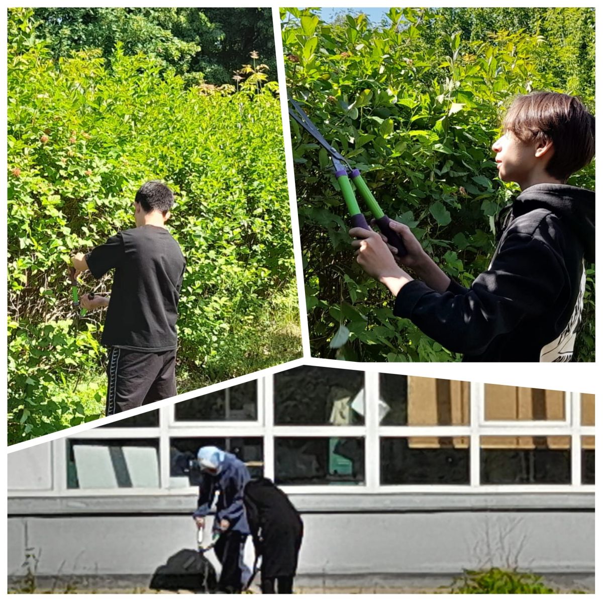 Наши ребята работают на территории гимназии.