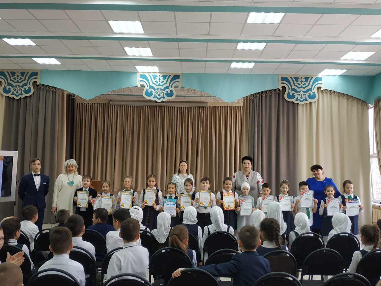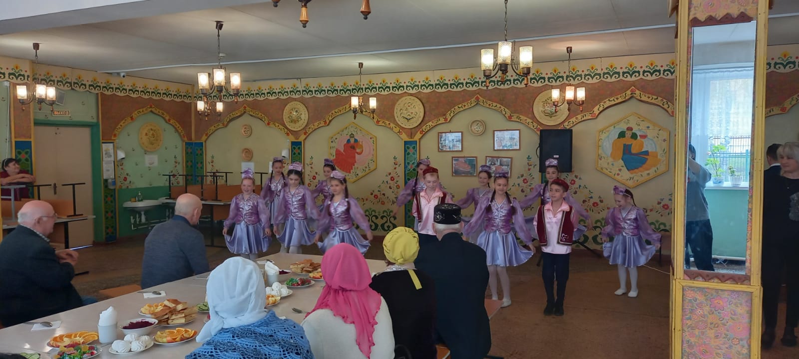 2б сыйныфы эзерлэгэн композиция, Расуля Назифовна житэкчелегендэге Голкэй бию тугэрэге тарафыннан эзерлэнгэн дэртле биюлэр, Ильназ Харисов hэм Аделя Искандарованын монлы жырлары, югары сыйныф укчылары тарафыннан курсэтелгэн "Ветераннарга дан"композициясе, алып баручылар Азалия Фарваева hэм Ильдар Зиятдиновнын кунеллэргэ утеп керерлек , тирэн эчтэлекле котлау сузлэре , ашханэ хезмэткэрлэре hэм Зэлифэ Габбасовна житэкчелегендэ 7б сыйныфы укчылары тарафыннан эзерлэгэн чэй остэле дэ ветераннар кунеленэ хуш килде.