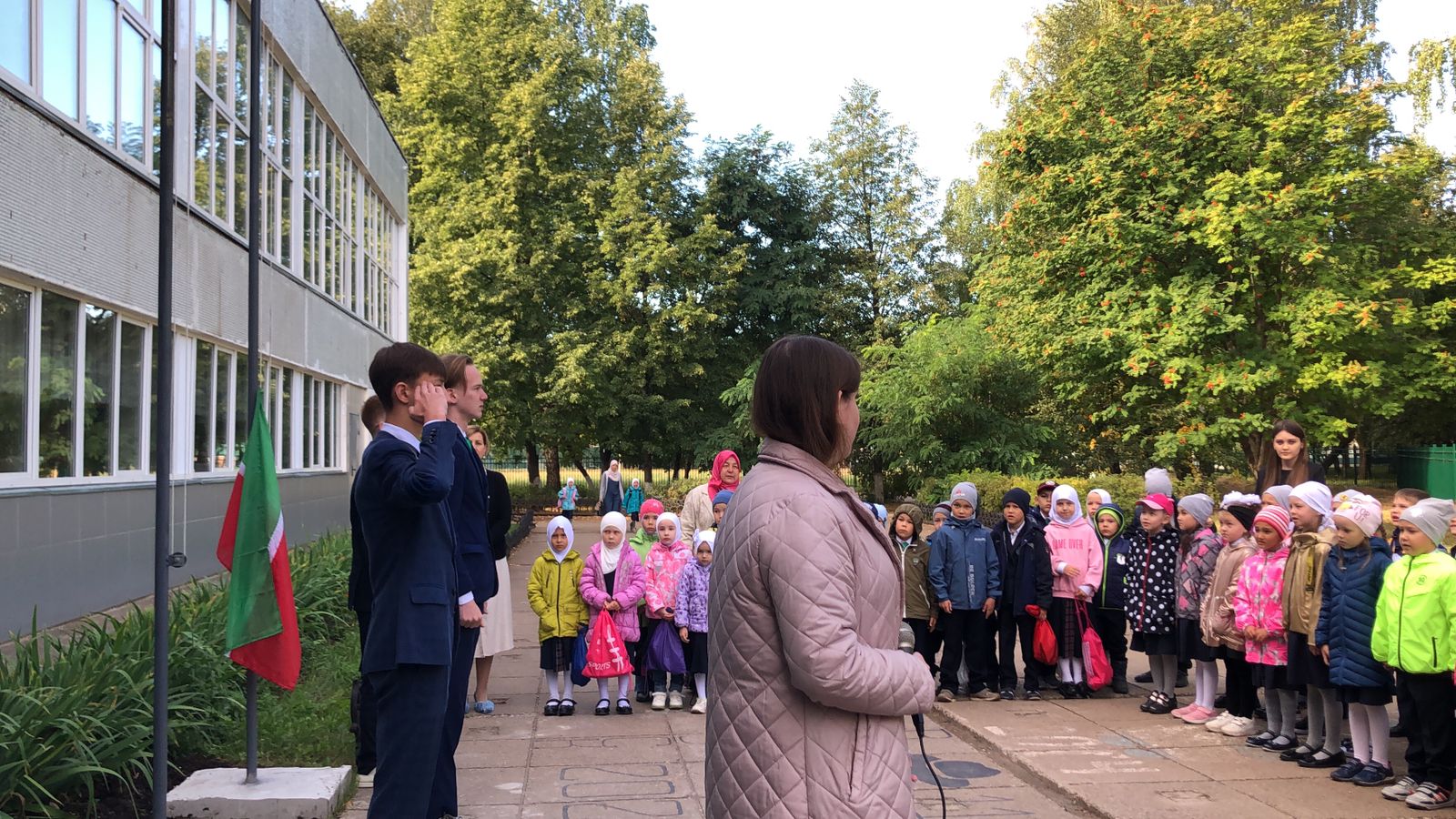 С нового учебного года начинается цикл еженедельных общешкольных линеек, где будем поднимать флаги РФ и РТ.