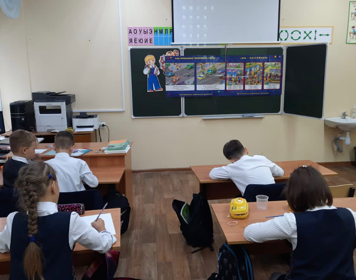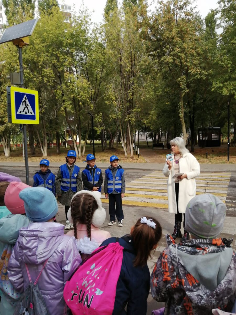 Отряд ЮИД 4б класса провели экскурсию "Безопасная дорога в школу" для первоклассников.