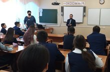 23.10.20. в 5-11 классах прошели классные часы на тему " 100 дорог, 1 твоя" Депутатами и спикером ШСУ были собраны материалы о представленных в вузах республики профессиях . На основе собранной информации активисты ШСУ подготовили сценарий классного часа.Так же, 9а и 9б классах прошла встреча с представителями