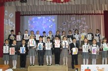 «Праздник алфавита» во 2 Б классе. Праздник английского языка собрал в актовом зале гимназии учителей и учеников начальных классов и их родителей. В конце мероприятия учащиеся были награждены медальонами «Лучший (Лучшая)» по английскому языку.