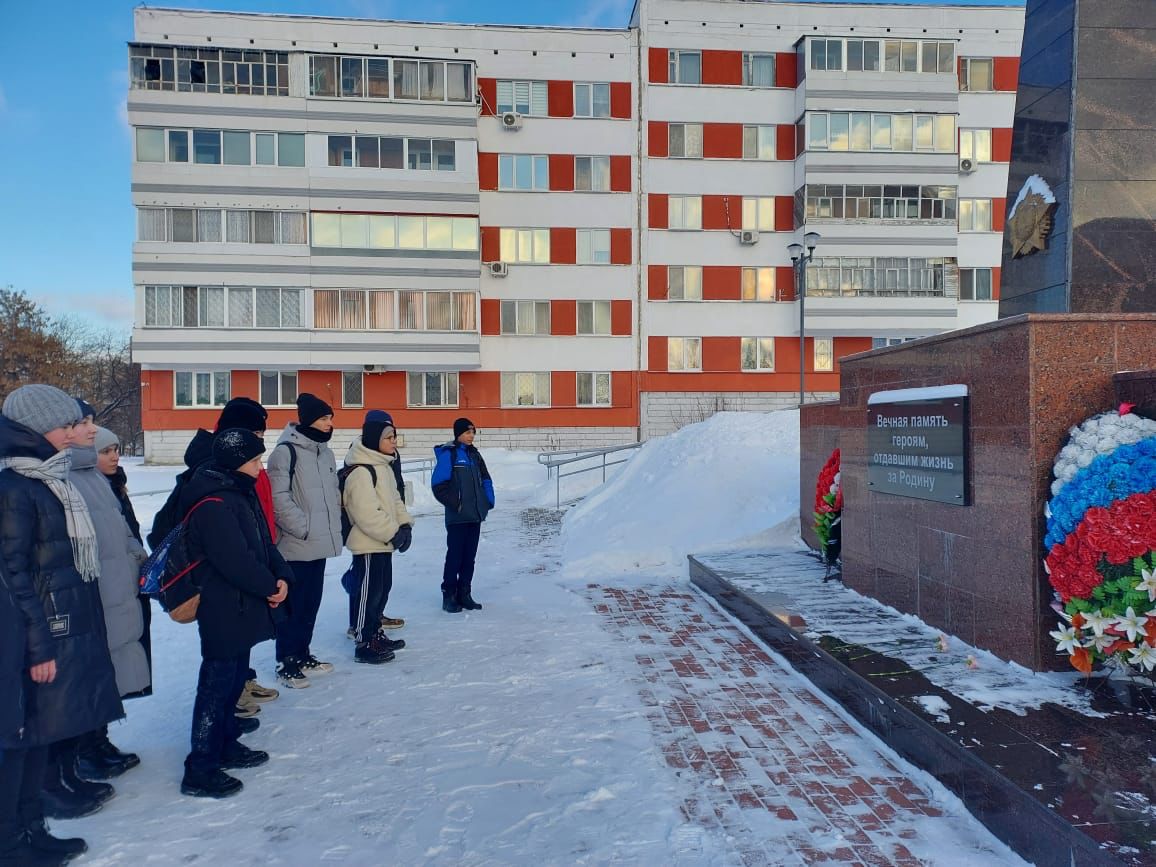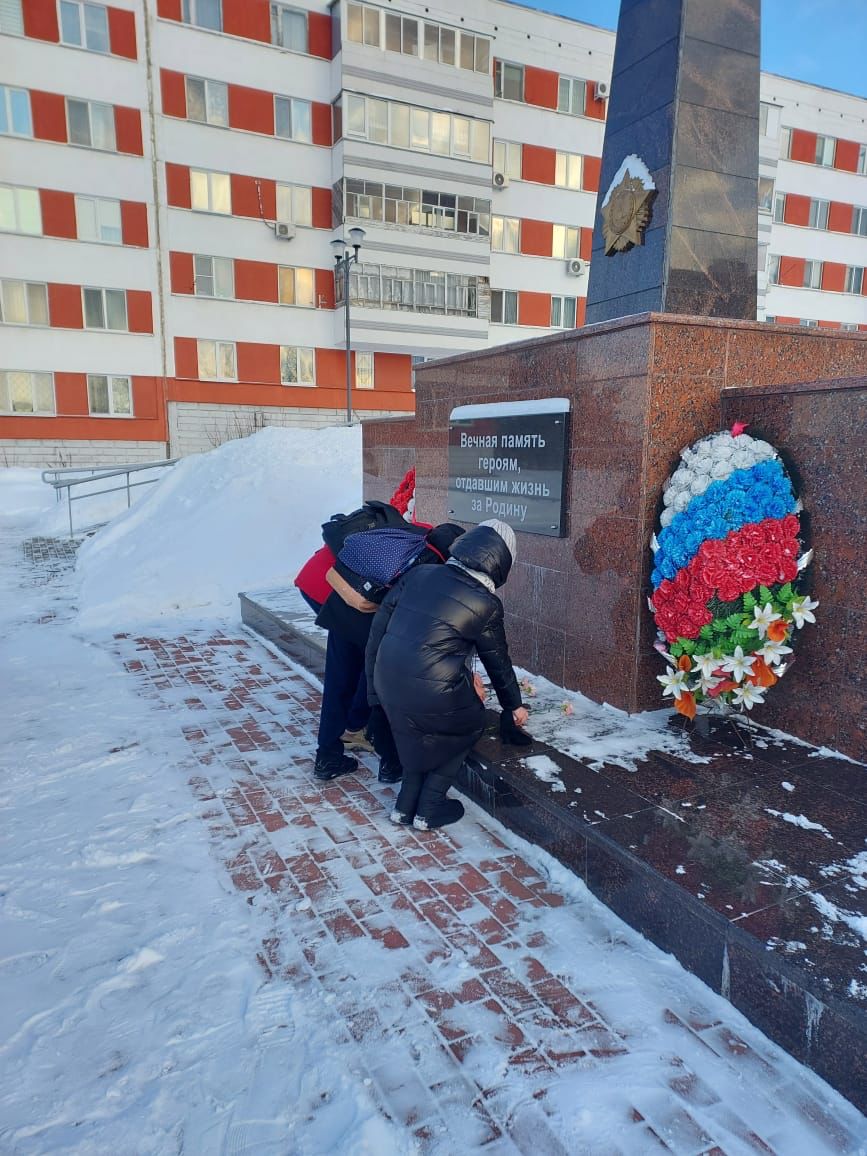 В рамках Дня Героев Отечества отряд Юнармецев под руководством Шарифова ЭР возложили цветы к Обелиску Славы Воинам на бульваре Боровецкий в честь погибшего в СВО ученика нашей гимназии 1982года рождения Беспалова Дениса Леонидовича.