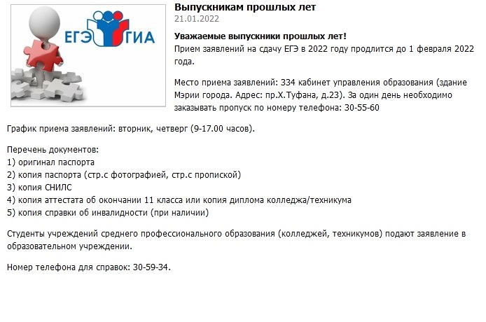 Прием заявлений на сдачу ЕГЭ выпускникам прошлых лет