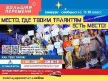 26 марта стартовал новый сезон Всероссийского конкурса «Большая перемена» проекта президентской платформы «Россия страна возможностей». Регистрация участников открыта на платформе bolshayaperemena.online до 1 июня 2021 года.