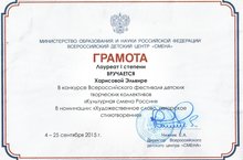 Поздравляем Харисову Эльвиру, ученицу 10 класса, ставшую Лауреатом I степени, в конкурсе Всероссийского фестиваля детских творческих коллективов "Культурная смена России" в номинации "Художественное слово, авторское стихотворение".