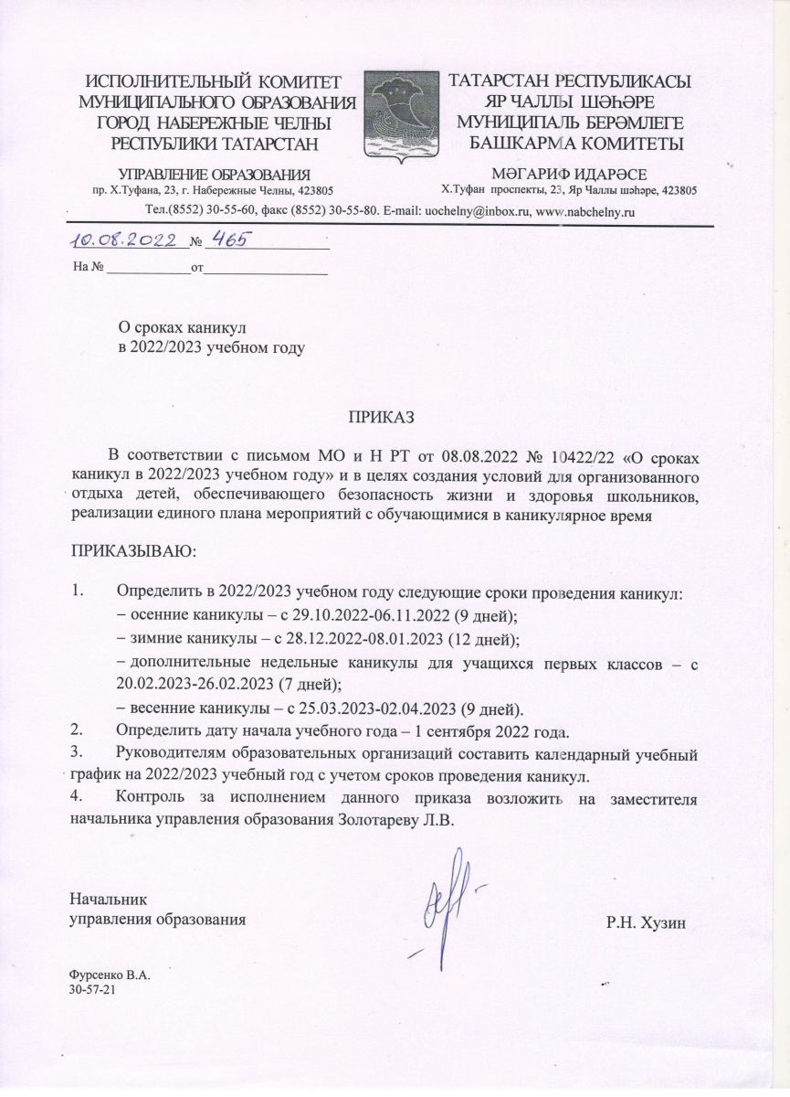 Приказ о зимних каникулах и новогодних мероприятиях в лицее 2022-2023
