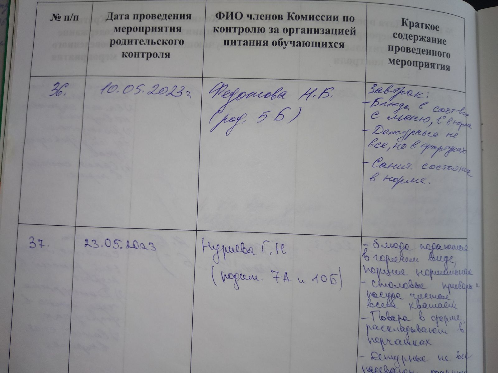 Родительский контроль питания: за май 2023г. Журнал контроля качества питания
