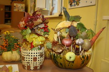 Осенняя пора очаровывает нас своими красками, вдохновляет на творчество. Важно не пропустить этих мгновений. И первоклассники, как никто, обычно стараются и выполняют все,что поручено. На первый осенний конкурс поделок, первоклассники Гимназии №57, совместно с родителями, подготовили невероятной красоты композиции из листьев в сочетании с предметами быта(коробки, бутылки) и продуктов питания(лук,чеснок,яблоки,тыква,свекла и пр.)