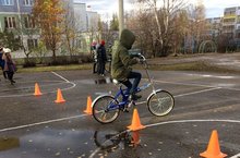 Солнечный день после пасмурного утра был наполнен положительными эмоциями. Ученики Гимназии приняли активное участие в кружке ЮИД "Фигурное вождение велосипеда".