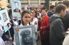 В многочисленных рядах "Бессмертного полка" учащиеся, педагоги, родители Гимназии с гордостью и достоинством несли портреты героев Великой Отечественной войны