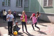 Утреннюю зарядку сменяет зажигательный флэш- моб. Двигательная активность, свежий воздух- основные достоинства этого вида занятий в пришкольном лагере «Байконур».