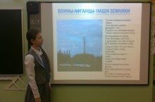 26 декабря тимуровцы подготовили и провели классные часы для учащихся Гимназии, посвященные 35 летию со дня ввода советских войск на территорию Афганистана. Учащиеся выступили с презентацией, рассказали о цели ввода советских войск в Афганистан, о жертвах этой самой долгой войны. Напомнили о том, что мы не должны забывать их.