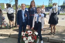 Учащиеся 10 А класса вместе с классным руководителем приняли участие в церемонии возложения цветов в честь погибших солдат во время Великой Отечественной войны. Мы чтим память воинов! С Днем Великой Победы!
