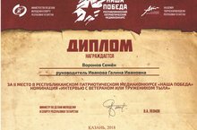 В Республиканском патриотическом медиаконкурсе «Наша Победа», наш видеоролик – «Интервью с ветераном» занял почётное IIместо. Работа нашего выпускника.
