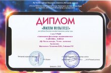 Республиканский детский кинофестиваль "Милли мультfest» - это комплексное, культурно-просветительское мероприятие, где воспитательным средством является киноискусство, возможность самовыражения и социализация через участие в анимационной, кино и it-деятельности. В этом году в муниципальном этапе фестиваля приняла участие ученица 5о класса Гайсина Лейла и заняла 1-е место.