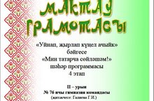 Гимназиябез егетләре- кызлары туган телдәге конкурсларда катнашырга бик яраталар. “ Мин татарча сөйләшәм” шәһәр программасы-иң яратканнары. Ученики нашей гимназии с у довольствием участвуют в конкурсах на родном языке. Городская программа “ Я разговориваю на татарском языке”- самая любимая!!!