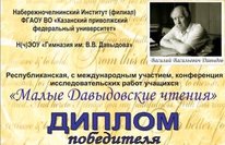 Поздравляем участников и победителей Республиканской, с международным участием, конференции исследовательских работ учащихся "Малые Давыдовские чтения" 05.06.2020