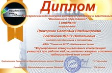 Педагоги гимназии Прохорова Светлана Владимировна и Богданова Юлия Витальевна стали победителями V Всероссийского конкурса авторских программ и элективных курсов