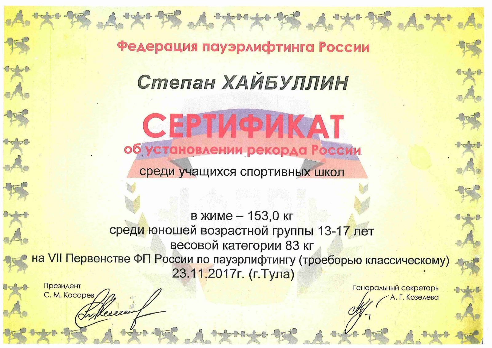 Ученик 9в класса Хайбуллин Степан установил рекорд России на VII первенстве ФП России по пауэрлифтингу ( троеборью классическому) в г. Тула . Поздравляем Степана с победой, желаем новых достижений в спорте.