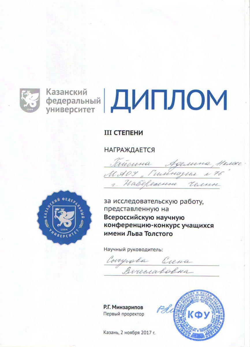 Всероссийская научная конференция-конкурс им. Льва Толстого в г.Казань 22.11.2017