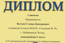 Призовое место в заключительном этапе Всероссийской олимпиады школьников по обществознанию 02.05.2017