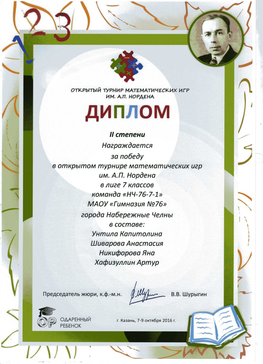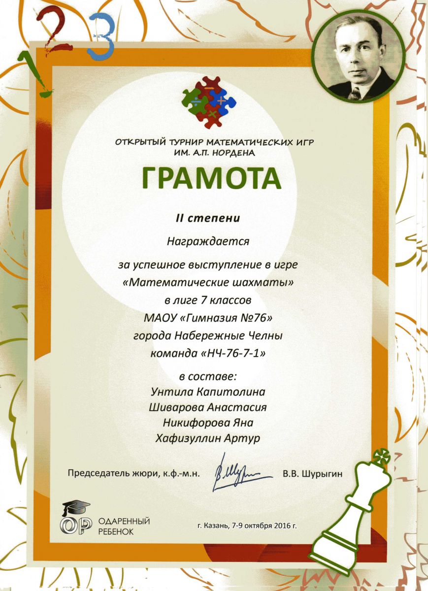 Грамота 2 стпени 7 класс "Математический лабиринт"