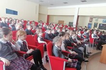 В актовом зале гимназии для учеников 1, 2, 3, 4 классов был показан интерактивный спектакль "Замечательные уроки безопасности".
