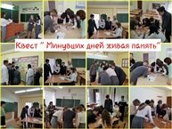Сегодня прошёл школьный этап Республиканского Квеста "Минувших дней живая память", посвящённого 76-летию великой Победы в Великой Отечественной войне. В квесте участвовало пять сборных команд. Каждая команда должна была пройти семь станций,