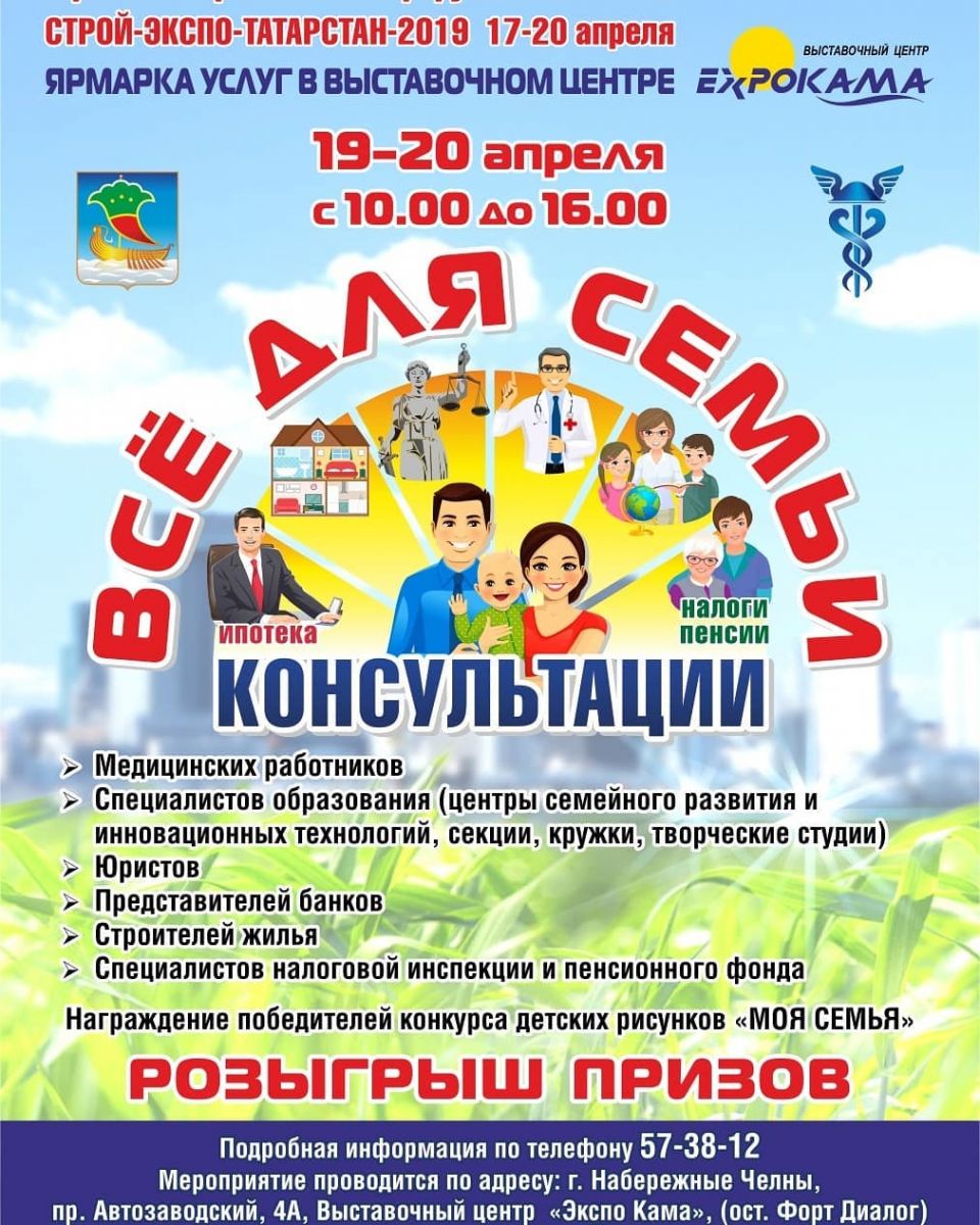 В рамках Строительного форума и выставки СТРОЙ-ЭКСПО-ТАТАРСТАН-2019 состоится ярмарка услуг в выставочном центре «Экспо Кама», 19-20 апреля с 10.00 до 16.00. Афиша