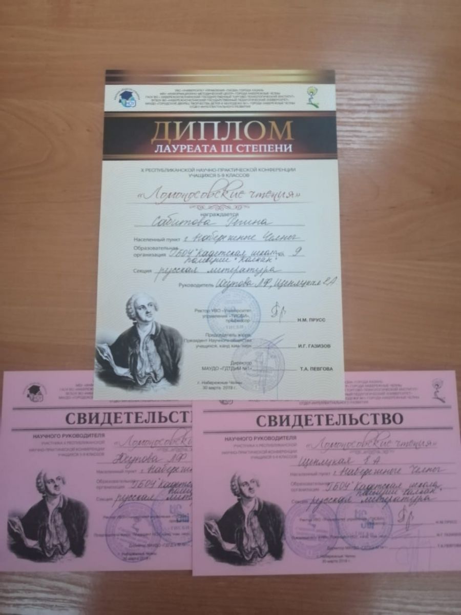 30 марта 2019 года прошла X Республиканская научно-практическая конференция «Ломоносовские чтения». С нашей школы выступали с работами воспитанницы КШП «Калкан» Мухаметшина Яна по биологии и Сабитова Регина по русской литературе. Диплом лауреата III степени получила Сабитова Регина. Научные руководители: Юсупова Л.Ф., Щеняцкая Е.А.