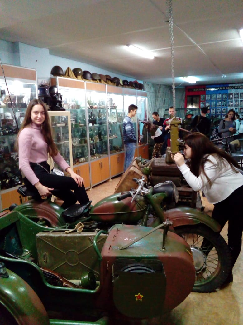 В ГДТДиМ №1 г.Наб.Челны организован музей с разными экспозициями на темы ВОВ, наши 10А и 10Б классы во главе своих классных руководителей Полуяновой С.В. и Юсуповой Л.Ф. посетили его и от мероприятия получили куча эмоций и впечатлений.