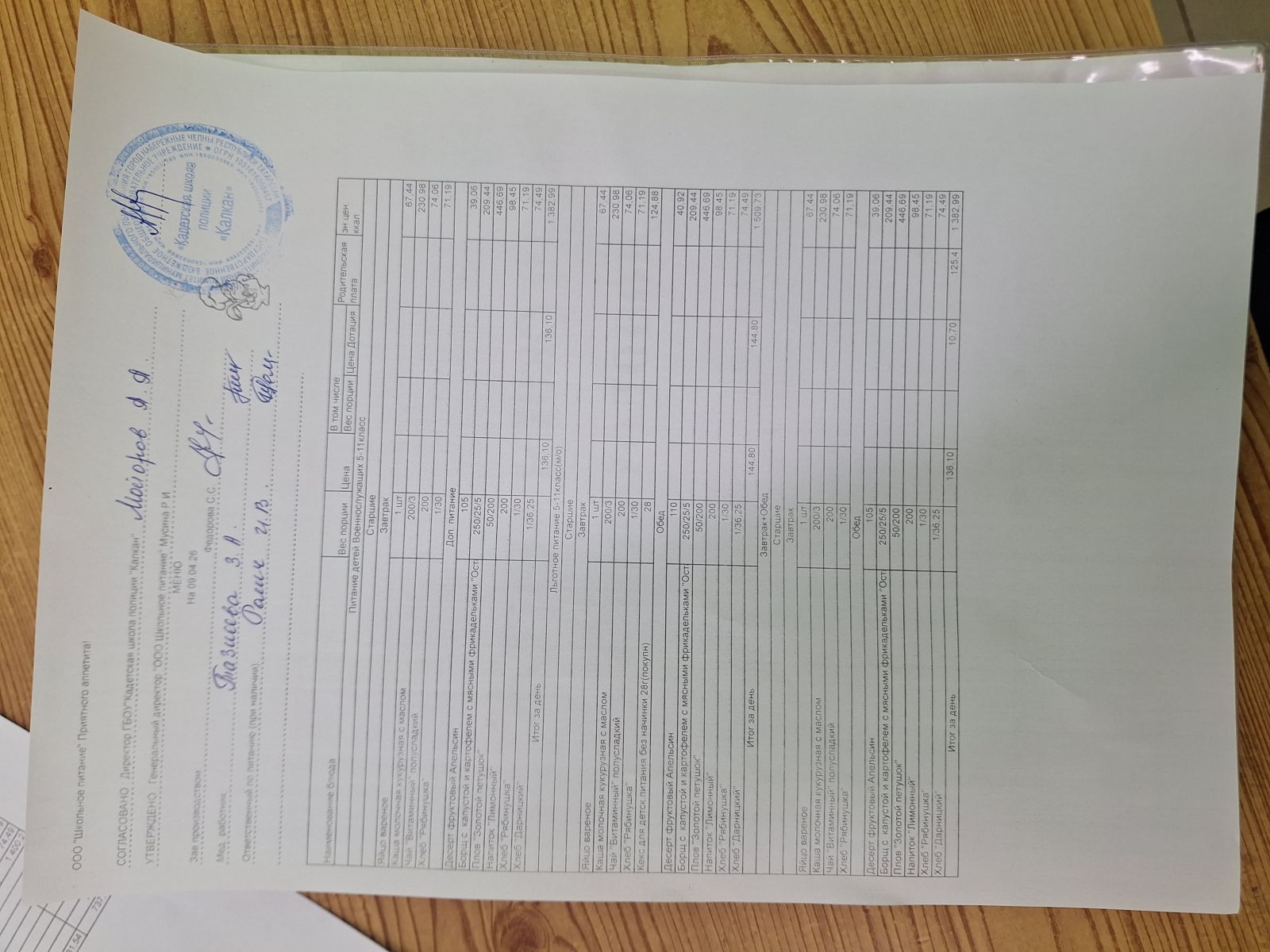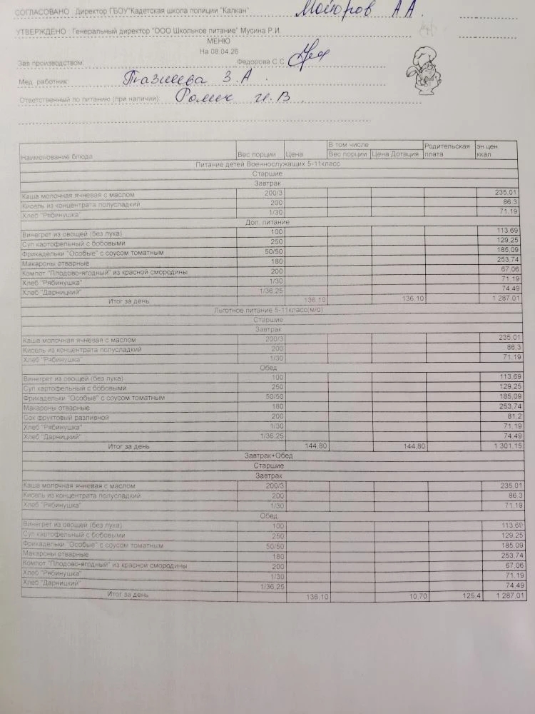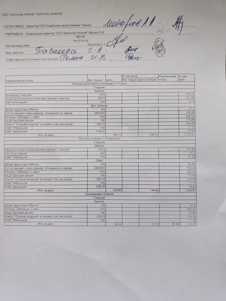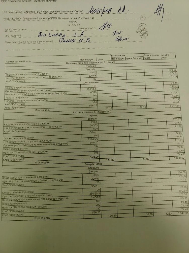 Ежедневное меню