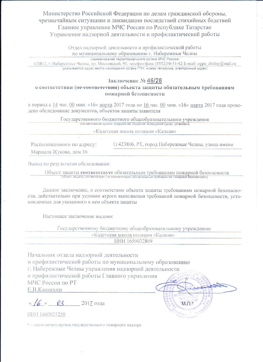 Заключение о соответствии объекта требованиям пожарной безопасности
