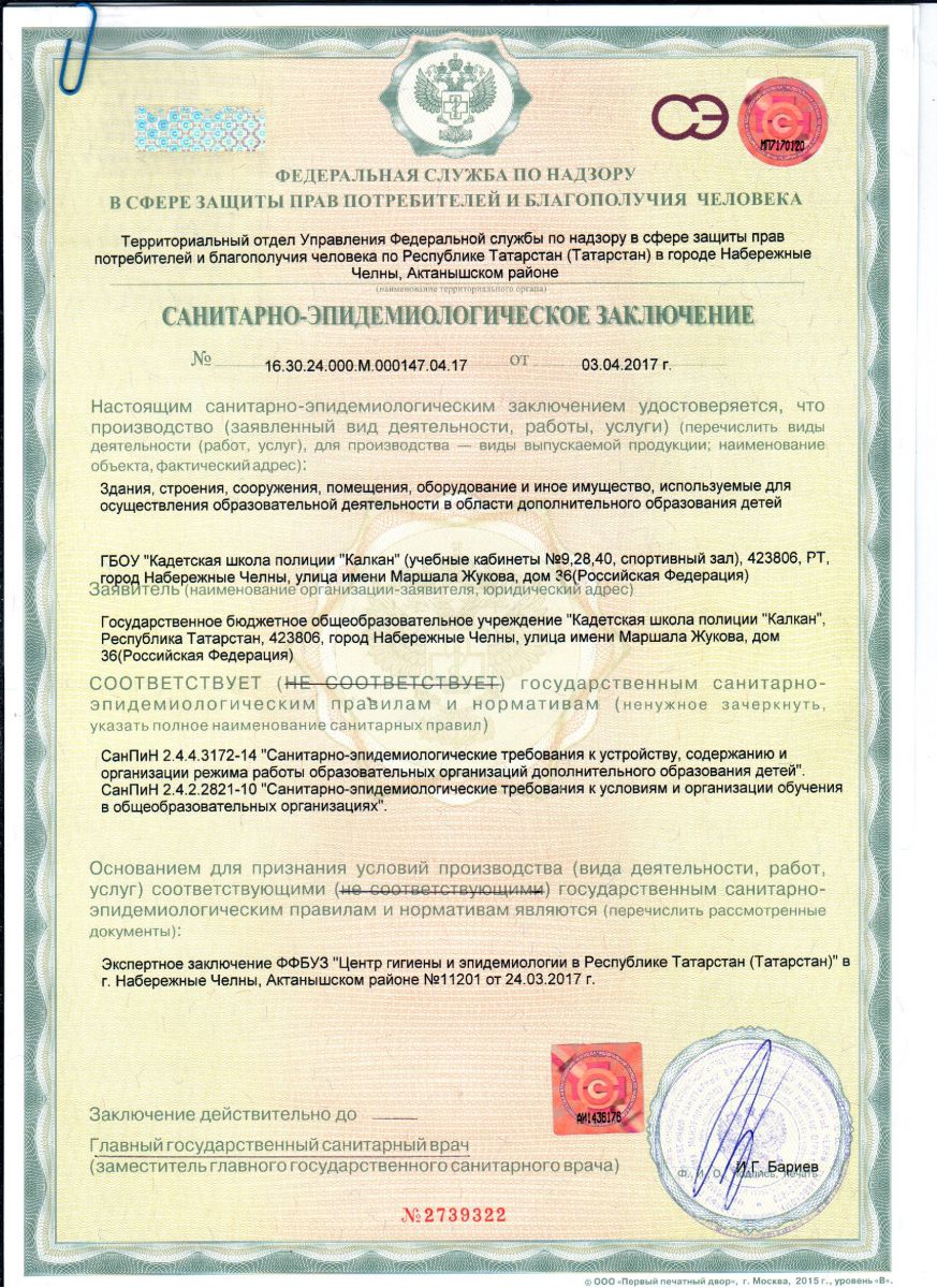 Санитарно-эпидемиологическое заключение1