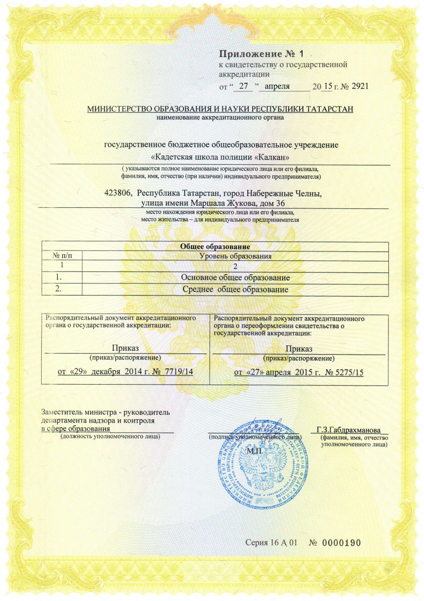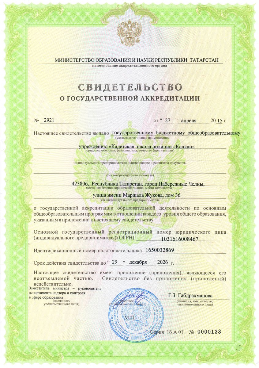 Государственное бюджетное образовательное учреждение «Кадетская школа полиции «Калкан» г. Набережные Челны/ Яр Чаллы шәһәре Дәүләт бюджет гомуми белем бирү учреждениясе “Калкан» полиция кадет мәктәбе”