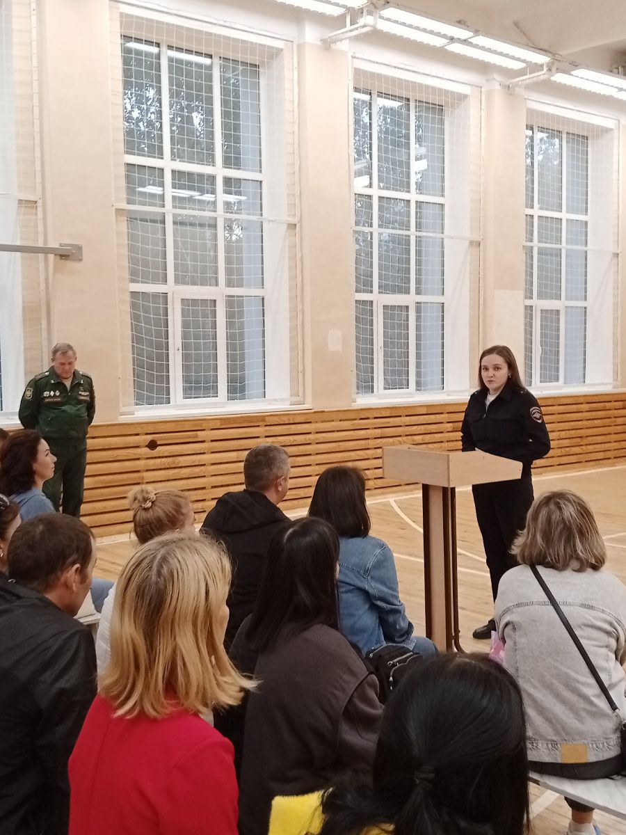 Опубликовано: 05.09.2024На общешкольном собрании выступил директор ОУ, Майоров Алексей Анатольевич. Полезную информацию родители получили от медицинского работника школы, Тазиевой З. А. и лейтенанта полиции ОП #2 "Комсомольский" Сынковой Л.Ф.