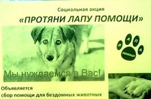 "Протяни лапу помощи" - благотворительная акция школьных волонтеров. Приглашаем всех желающих принять участие в данной акции. Можно принести в неограниченном количестве крупы, сухие и влажные корма, средства по уходу за животными и другие принадлежности. Все собраные средства будут переданы приютам для животных. Пункт приема - вахта школы.