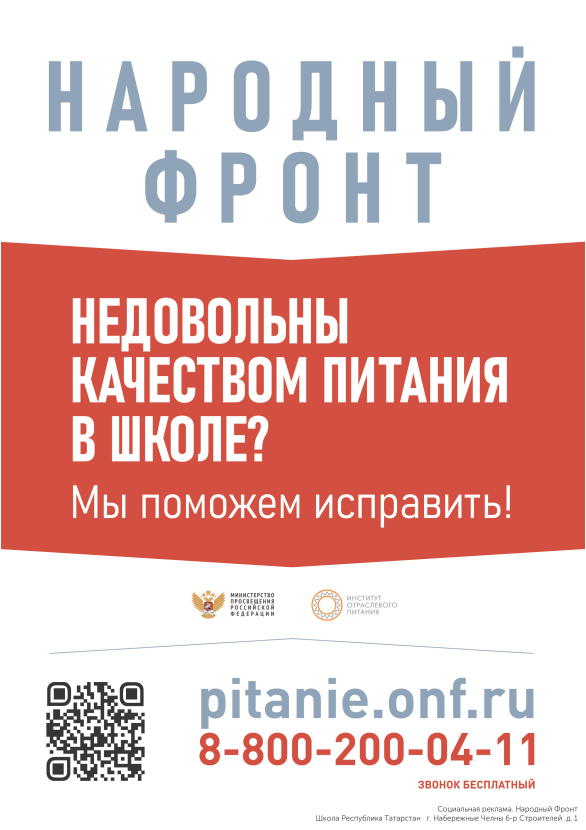 Мәктәптәге туклану буенча Халык Фронты һәм Россия Мәгариф Министрлыгының бердәм кайнар линиясе. Буклетны йөкләтеп алырга биредә