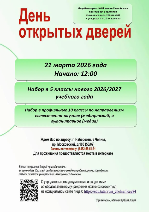 Муниципальное автономное общеобразовательное учреждение города Набережные Челны «Лицей-интернат №84 имени Гали Акыша» Республики Татарстан/Яр Чаллы шәһәренең "Гали Акыш исемендәге 84нче лицей-интернат" муниципаль автоном гомуми белем бирү учреждениесе