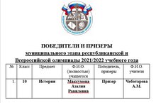 Победители и призеры муниципального этапа олимпиады по истории 08.12.2021