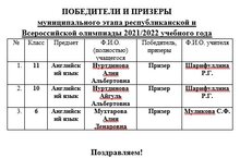 Победители и призеры муниципального этапа олимпиады по английскому языку 08.12.2021