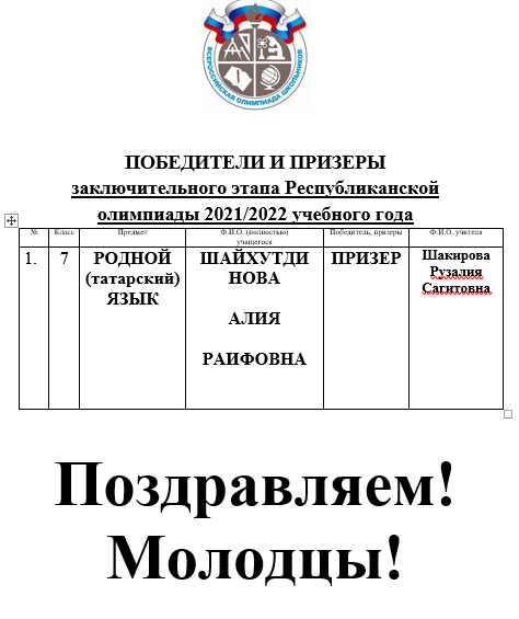 ПОБЕДИТЕЛИ И ПРИЗЕРЫ заключительного этапа Республиканской олимпиады 2021/2022 учебного года