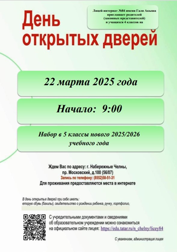 Муниципальное автономное общеобразовательное учреждение города Набережные Челны «Лицей-интернат №84 имени Гали Акыша» Республики Татарстан/Яр Чаллы шәһәренең "Гали Акыш исемендәге 84нче лицей-интернат" муниципаль автоном гомуми белем бирү учреждениесе